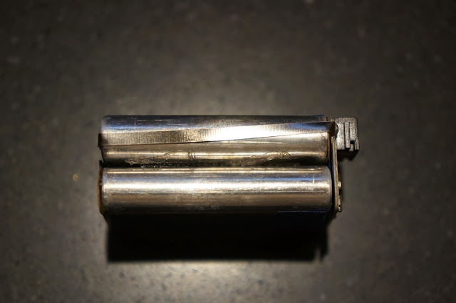 Ter voorbereiding van mijn tocht naar Sarek had ik de externe batterij terug aangesloten. Ik kwam tot de conclusie dat de hack was zo dood als een pier was. Ik heb een nieuwe, officiële accu ontmanteld en op dezelfde manier geprepareerd en ingewerkt in een omhulsel. Tot mijn grote wanhoop stond er geen spanning op de contacten.